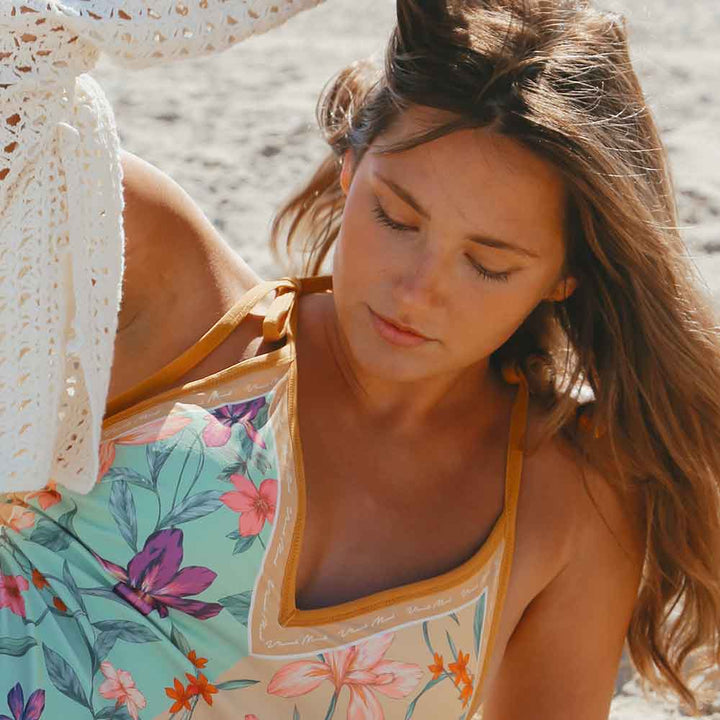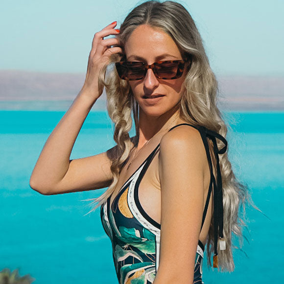 We recommend hand washing your reversible swimsuit in cold water with a mild detergent and laying it flat to dry to preserve colors and elasticity. For more tips on washing and protecting your swimwear, check out our swimsuit care blog for helpful tips and tricks!